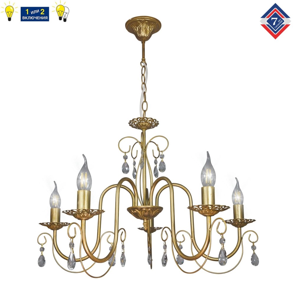Люстра S1255-5 – это результат кропотликой работы опытных мастеров. Она изготовлена из высококачественных материалов, что гарантирует ее долговечность и надежность. Основным материалом является прочный и изысканный металл, покрытый патиной золота, что придает ей благородный вид и создает эффект глубины. Такое покрытие не только красиво выглядит, но и устойчиво к царапинам и другим повреждениям.