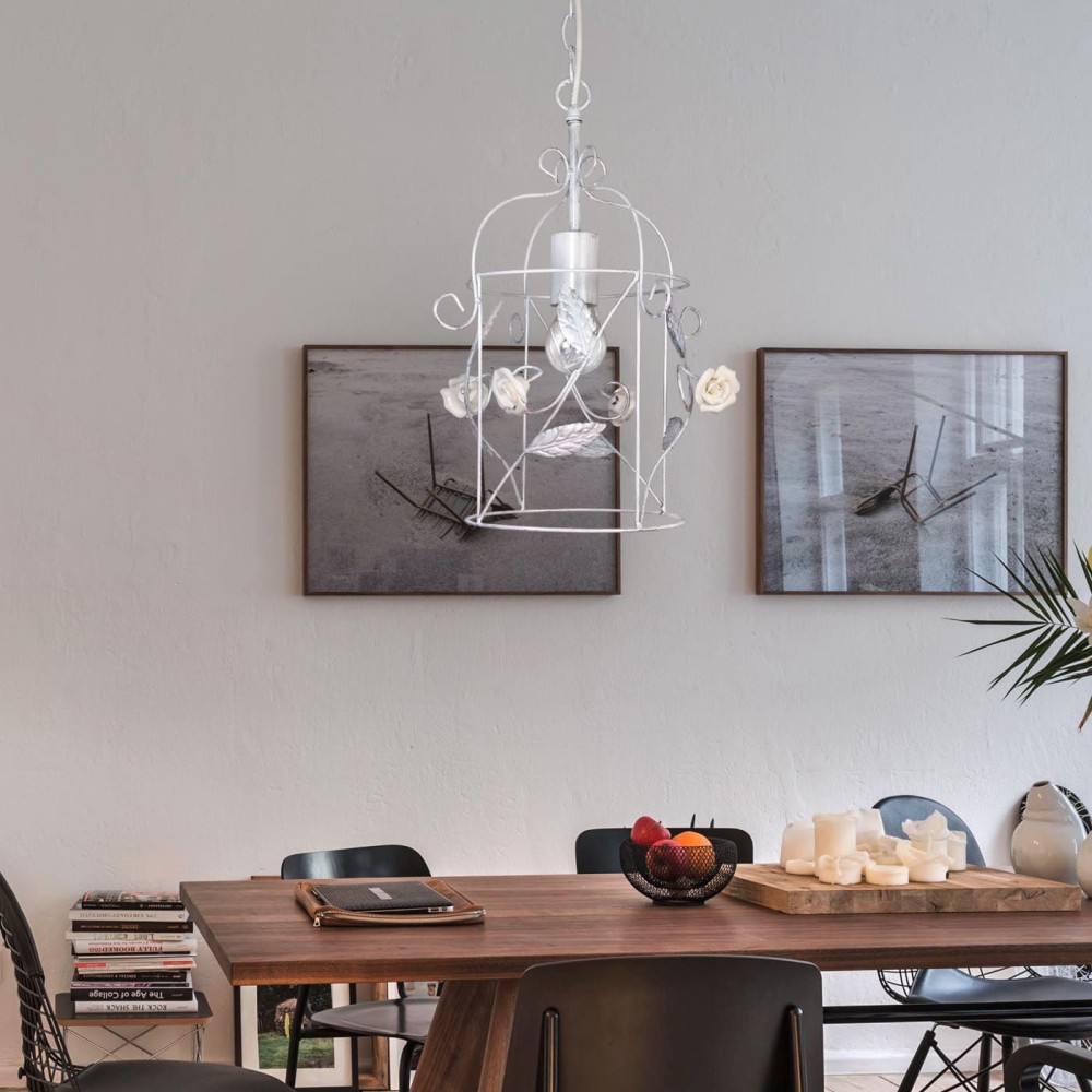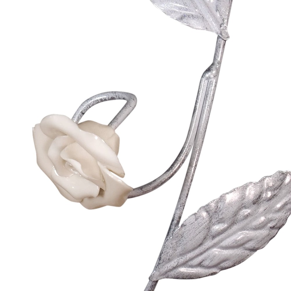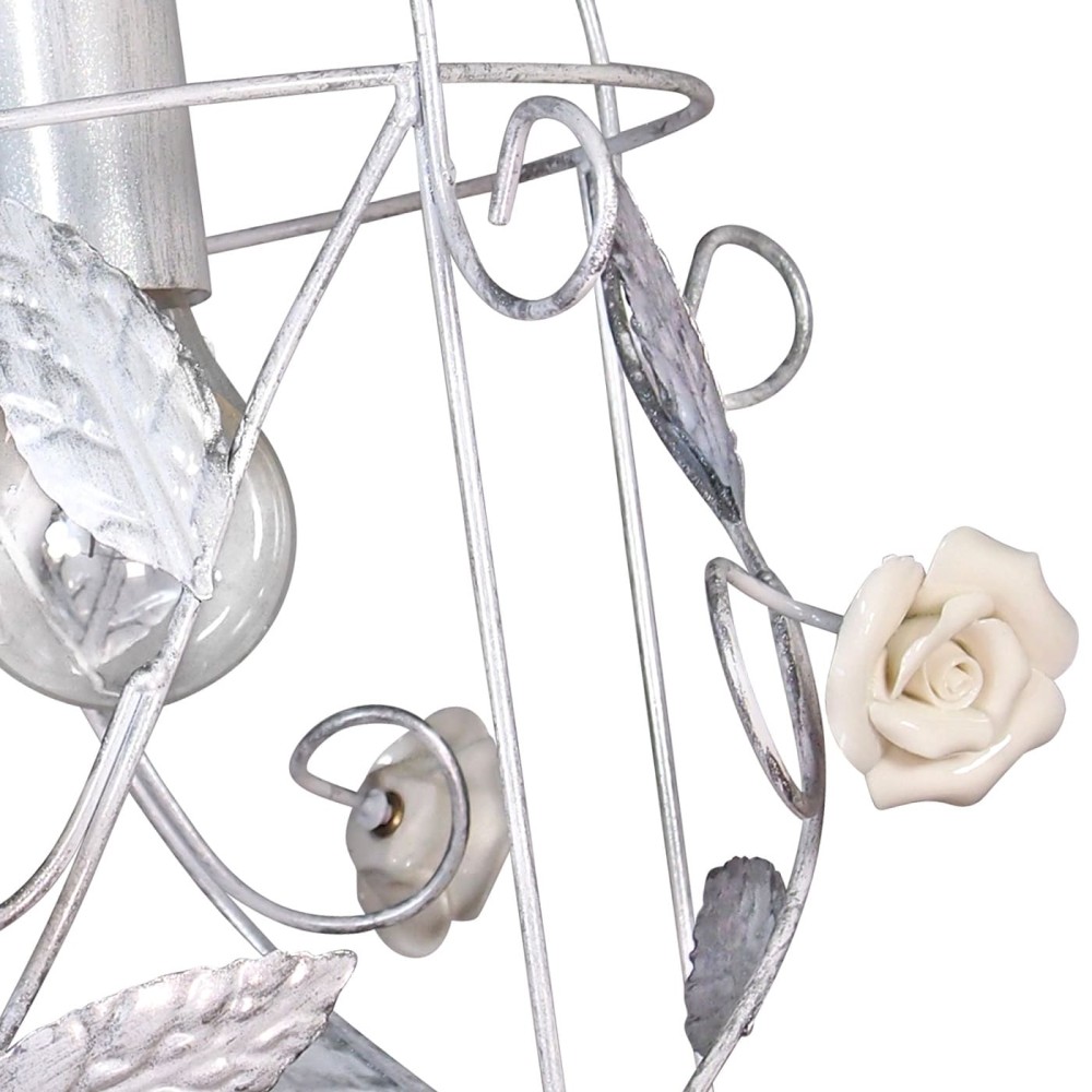 Сердцем этой люстры являются стилизованные розы белого цвета, которые придают ей неповторимый шарм и романтическую атмосферу. Декоративные розы, выполненные из металла, с филигранной филировкой, напоминают о классической красоте и изысканности. Их расположение создает эффектный визуальный акцент, привлекающий внимание и добавляющий комнате утонченности. Вдохновленные природной красотой, эти элементы идеально вписываются в любой интерьер, создавая ощущение гармонии и спокойствия.