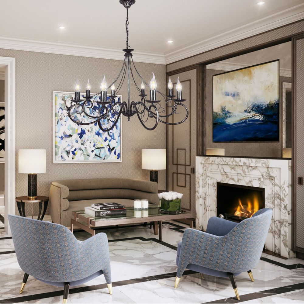 • Стиль: Классический, неоклассика, прованс – благодаря сочетанию элементов, люстра подойдет к различным интерьерным решениям, от традиционных до современных, с акцентом на элегантность и утонченность.