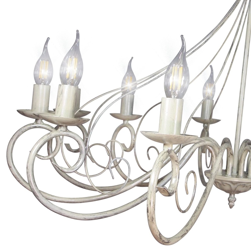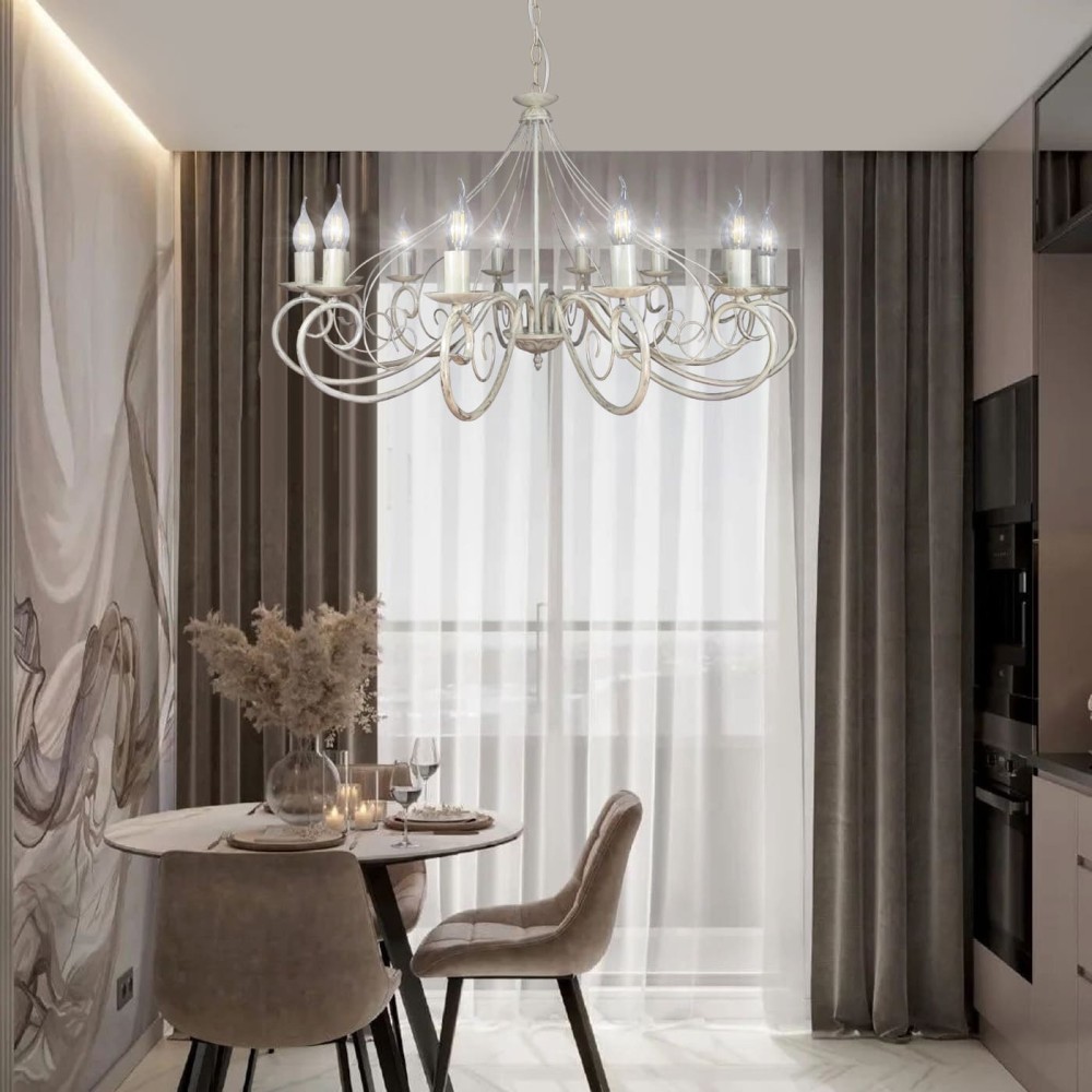 Роскошный Дизайн и Патиновая Патина: Люстра выполнена из высококачественного металла, окрашенного в элегантный бежевый цвет с патинированной отделкой серебра. Патинирование придает светильнику винтажный вид, добавляя ему шарма и уюта. Сочетание бежевого цвета и патинированной отделки создает мягкое, теплое освещение, идеально подходящее для расслабления и отдыха. Этот стиль прекрасно впишется в интерьеры в стилях классика, неоклассика и прованс.
