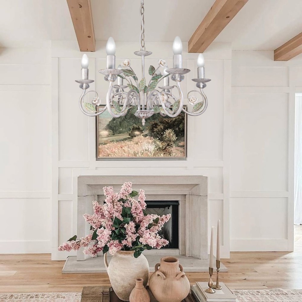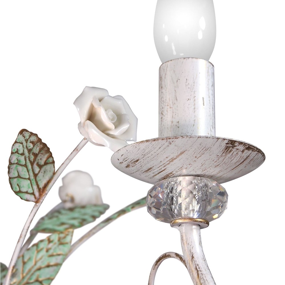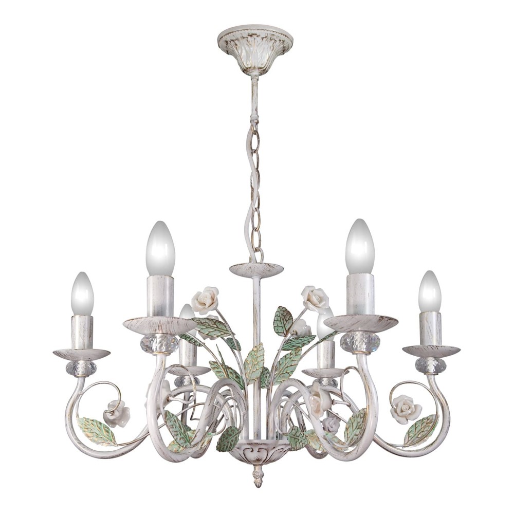 - Роскошный дизайн: Люстра С1282-6 воплощает в себе гармоничное сочетание стилей: классики, флористики и современности. Элегантная патина золота, подчеркнутая белым цветом, создает ощущение богатства и утонченности. Декоративные элементы – белые розы и хрустальные вставки – добавляют нотку романтики и изысканности. Флористический стиль люстры прекрасно впишется в интерьеры в стиле барокко, ренессанса, а также в современные пространства, где требуется создание особого настроения.