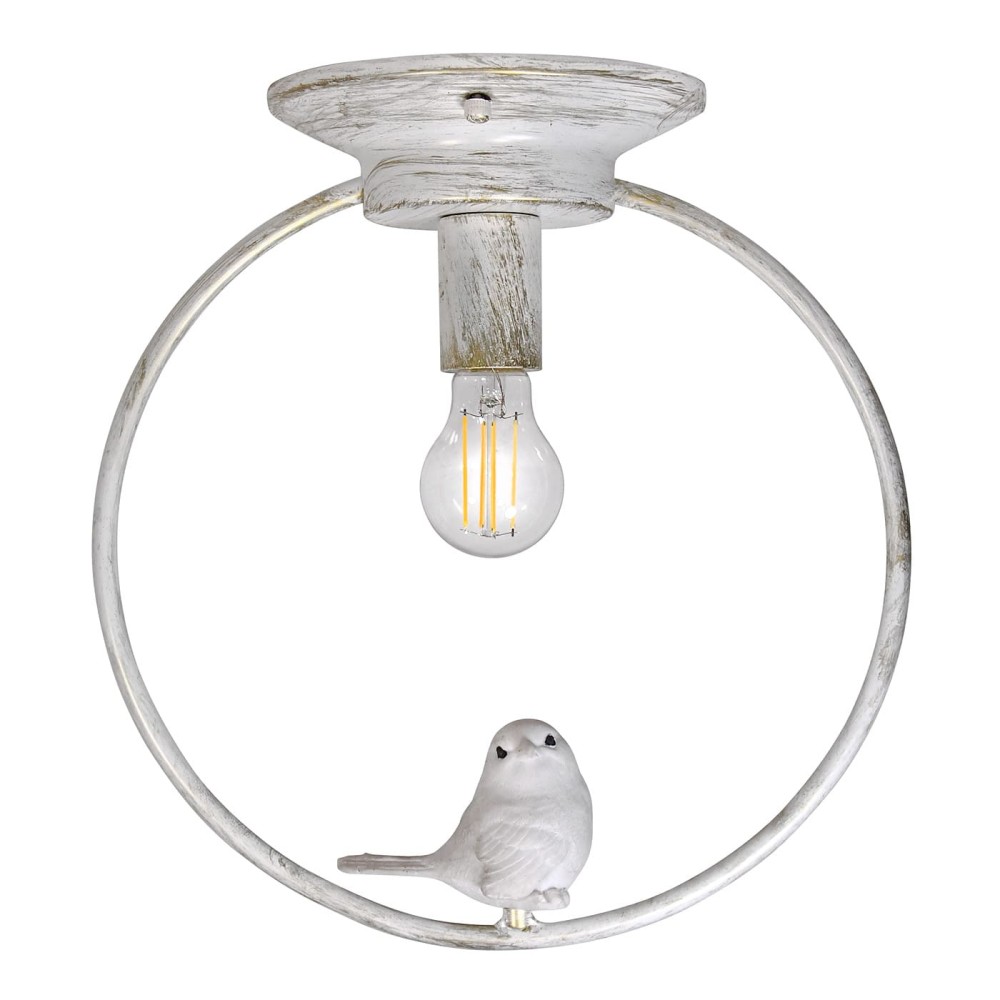 Люстра с птичками потолочная российского производства ПЕТРАСВЕТ S1291-1, 1хЕ27 макс, 60Вт, стиль - флористика, арматура - металл, цвет светильника- белый с патиной золота, размеры светильника (LxWxH) - 18x34x36, вес - 0,7 кг, Расстояние от птички до патрона 14 см, Люстра с птичками в стиле прованс рассчитана и на натяжной потолок и освещение 6-8 м2 помещения в зависимости от мощности лампочек Е27, Все люстры потолочные подвесные подходят и для натяжных и подвесных потолков, Люстра потолочная подходит для освещения комнат, кабинета, гостиной, спальни, столовой, детской, кухни, Заводская гарантия 7 лет, Потолочный светильник плотно уложен в коробке, Потолочная люстра крепится к потолку стандартной потолочной планкой, диаметр основания 18 см,