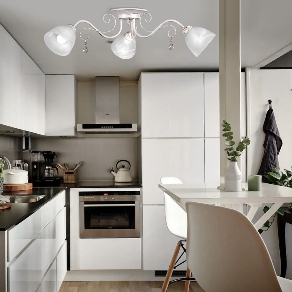 Декоративные элементы: Хрустальные подвески. Использование хрусталя придает люстре особый шарм и создает эффектное световое окружение. Блеск хрусталя подчеркивает красоту интерьера и добавляет ему изысканности.