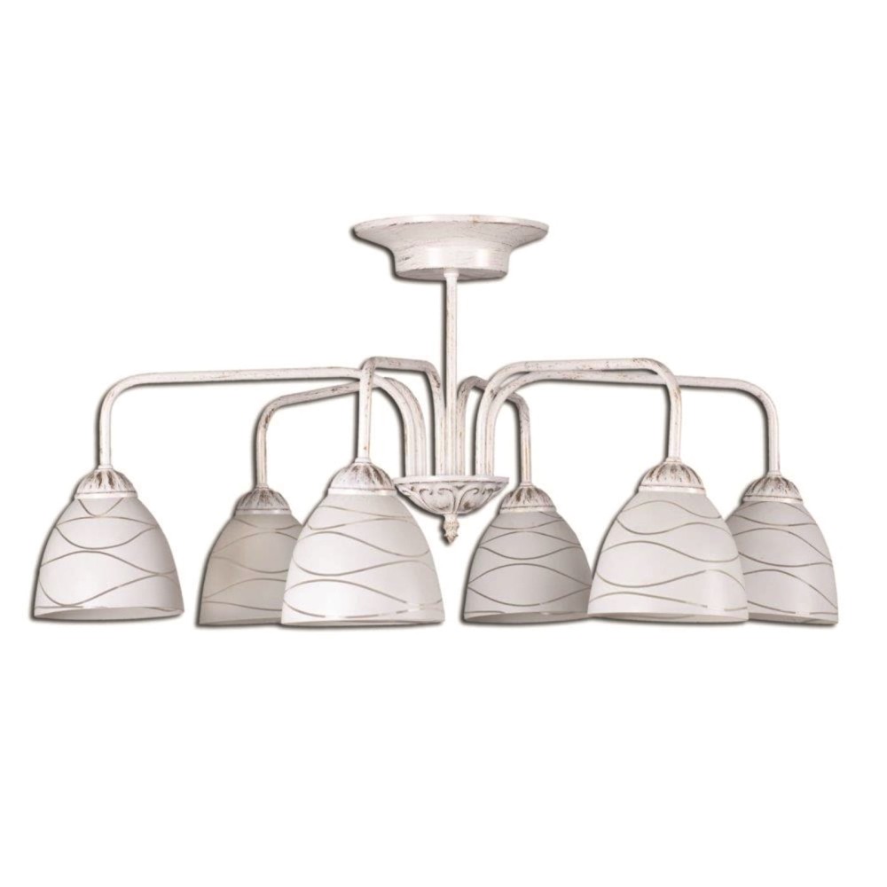 - Дизайн и стиль: Люстра S2140-6 воплощает в себе идеальное сочетание элегантности и уюта. Классический стиль с элементами неоклассики и прованса делает ее универсальным выбором для гостиной, столовой, спальни или других помещений. Белый цвет светильника с патиной золота придает ей изысканный вид и подчеркивает благородство материалов. Плавные изгибы, декоративные элементы и тщательно продуманная форма плафонов создают эффектное световое пространство.