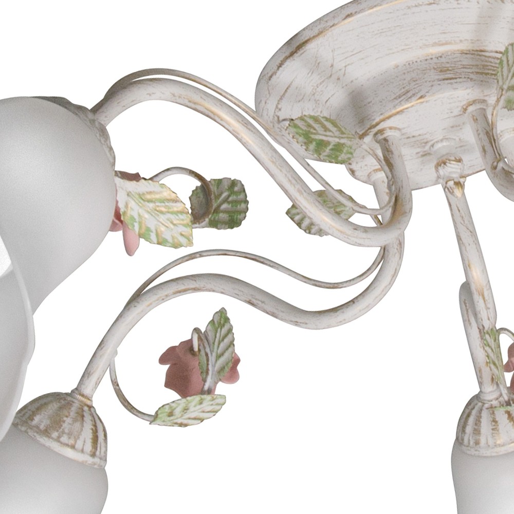 Главной особенностью этой люстры является ее декоративные элементы – розовые розы. Эти нежные цветы, выполненные из качественного материала, придают светильнику неповторимый шарм и романтическую атмосферу. Пять плафонов, расположенных на металлическом каркасе, создают эффектный световой рисунок, подчеркивая красоту и детали интерьера. Люстра идеально вписывается в стиль флористики, добавляя в ваш дом нотку природной красоты и уюта.