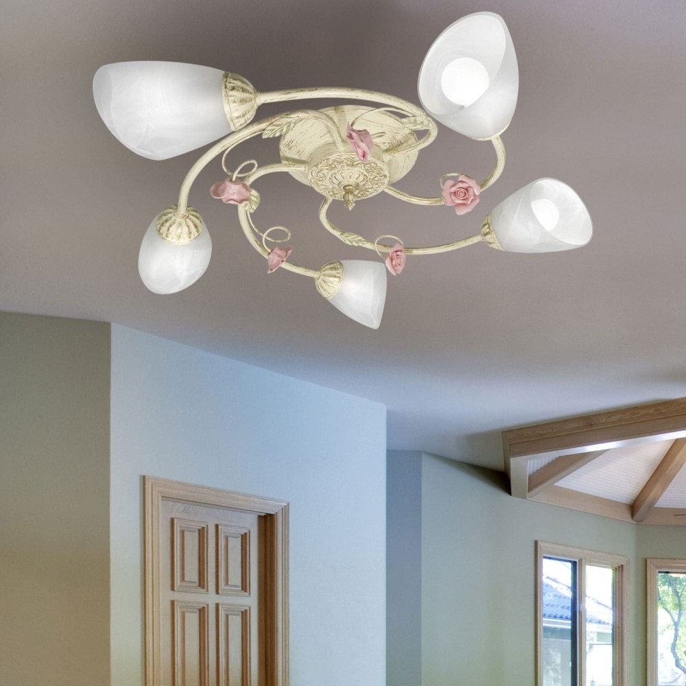 - Изысканный дизайн: Люстра S2217-5 поражает своим великолепным внешним видом. Сочетание бежевого цвета с патиной золота придает ей благородный и теплый оттенок. Декоративные элементы в виде розовых роз, аккуратно вплетенных в конструкцию, добавляют люстре романтичности и очарования. Розы не только украшают светильник, но и подчеркивают его изысканный стиль.