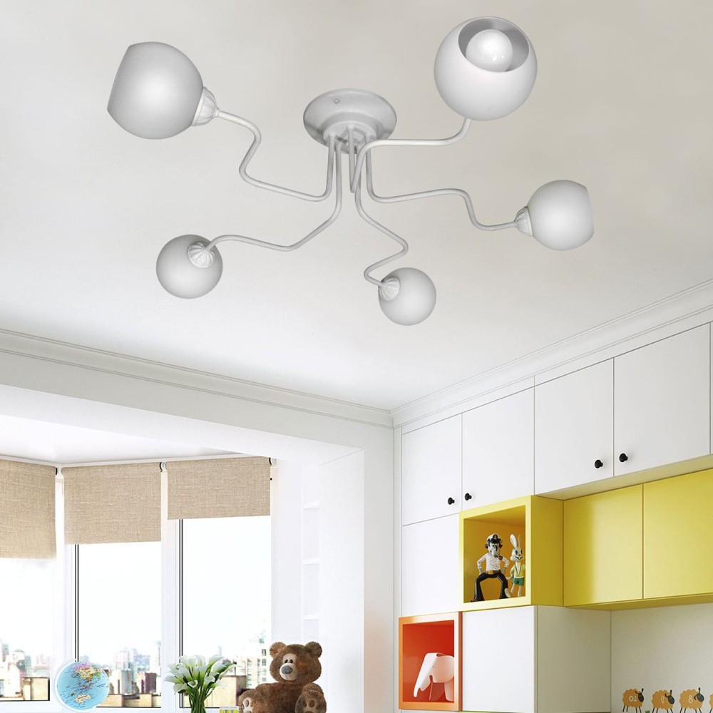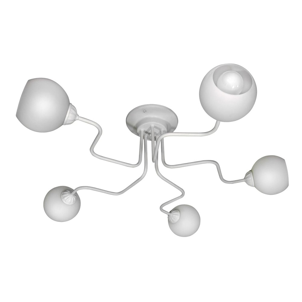 • Дизайн: Пятиплафовая конструкция люстры создает эффектное и многогранное освещение. Рассеиватель плафонов направлен внутрь, обеспечивая мягкое и равномерное освещение, без резких теней. Благодаря своей конструкции, люстра равномерно освещает площадь до 30 квадратных метров, создавая уютную атмосферу в комнате.