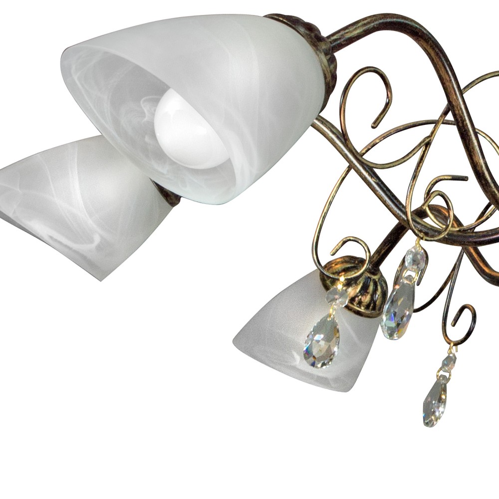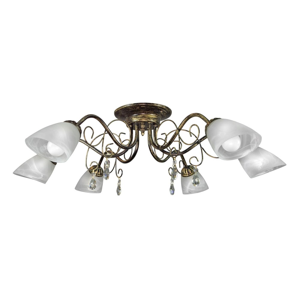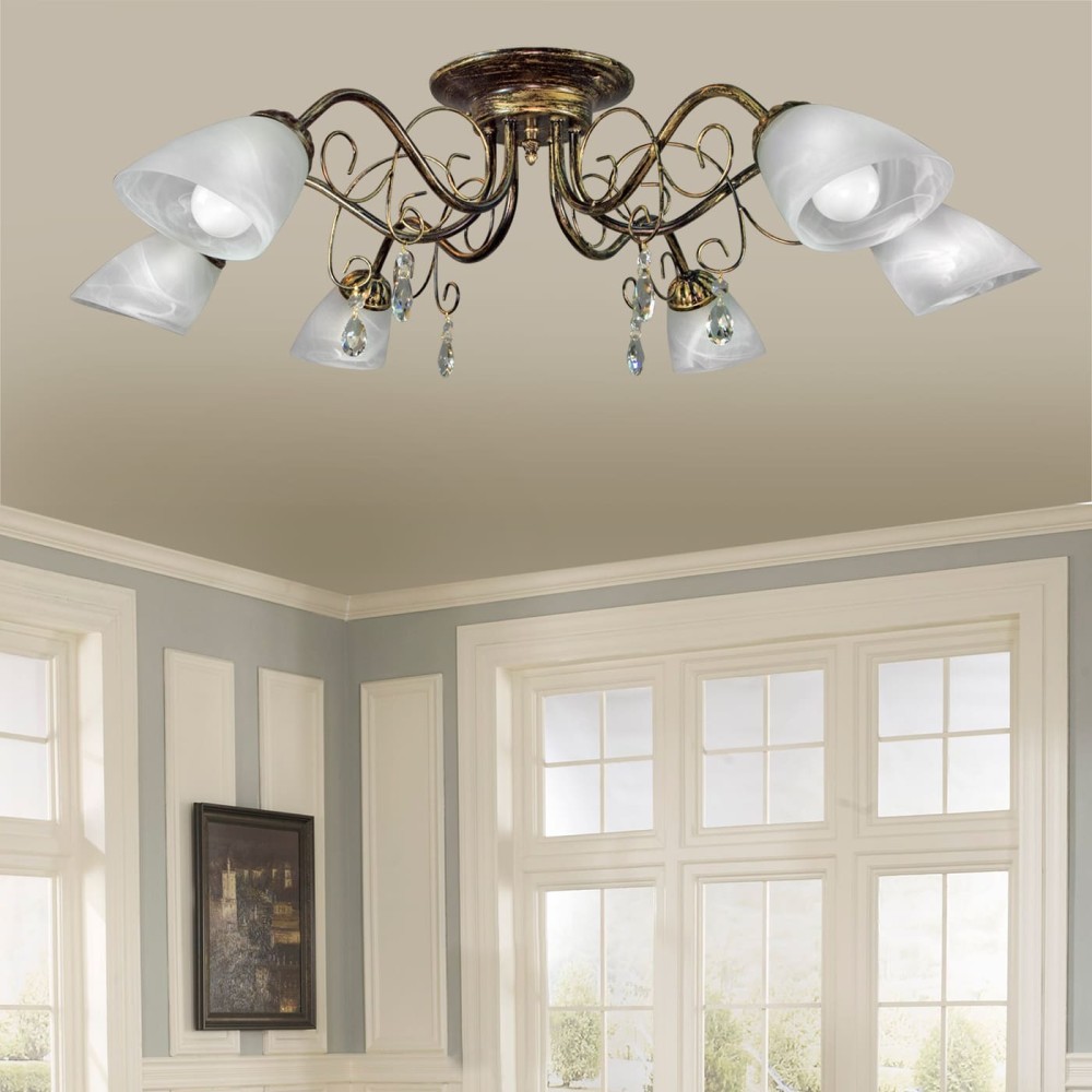 Главной отличительной чертой этой люстры являются шесть хрустальных подвесок, которые не только добавляют ей визуального блеска и изысканности, но и рассеивают свет, создавая мягкое и уютное освещение. Хрусталь, известный своей превосходной прозрачностью и способностью преломлять свет, делает эту люстру настоящим произведением искусства. Каждая подвеска, выполненная из стекла, подчеркивает красоту общего дизайна.
