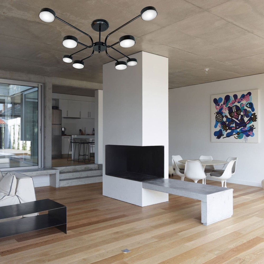 - Современный дизайн: Люстра сочетает в себе элементы современного и неоклассического стилей, что делает ее универсальной и подходящей для различных интерьерных решений. Черный цвет светильника и лаконичные формы подчеркивают ее элегантность и добавляют изысканности в любое помещение. Ширина основания – 12 см, высота – 26 см, ширина – 74 см, что обеспечивает оптимальное распределение света и не перегружает пространство.