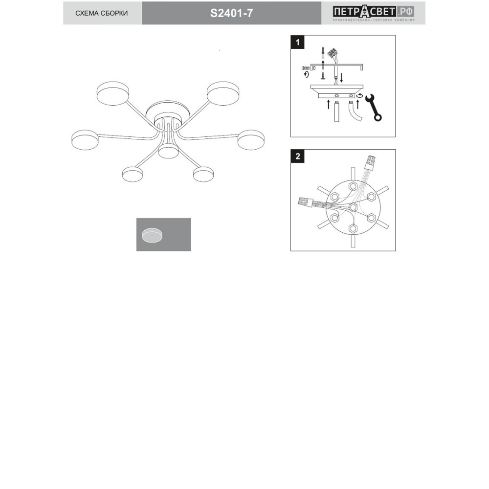 В заключение: Люстра потолочная светодиодная LED S2401-7 от Петрасвет – это инвестиция в комфорт, стиль и долговечность вашего дома. Она станет ярким акцентом в любом интерьере и обеспечит превосходное освещение. Закажите ее прямо сейчас и наслаждайтесь безупречным качеством и функциональностью! Люстра потолочная светодиодная белая большая дизайнерская Петрасвет производство люстр №1 в России S2401-7, 7хGX53 макс, 20Вт, стиль - модерн, арматура - металл, цвет светильника- белый, размеры светильника (LxWxH) - 75x75x26, вес - 2 кг, Потолочный светильник LED рассчитан и на натяжной потолок и освещение 21-30 м2 помещения в зависимости от мощности лампочек GX53, Все люстры потолочные подвесные подходят и для натяжных и подвесных потолков, Люстра потолочная светодиодная подходит для освещения комнат, кабинета, гостиной, спальни, столовой, детской, кухни, Заводсткая гарантия завода Петрасвет 7 лет, Светильник потолочный светодиодный хай тек LED плотно уложен в коробке, Светодиодные люстры потолочные для дома крепятся к потолку стандартной потолочной планкой длиной 18 см, Лампочки светодиодные LED подбираются по следующим параметрам: для яркого освещения - 3 Вт на 1 м2 комнаты, для среднего - 2 Вт на 1 м2, Люстра лампочками не комплектуется, В случае боя или не комплекта, вышлем новый за свой счет в день обращения,