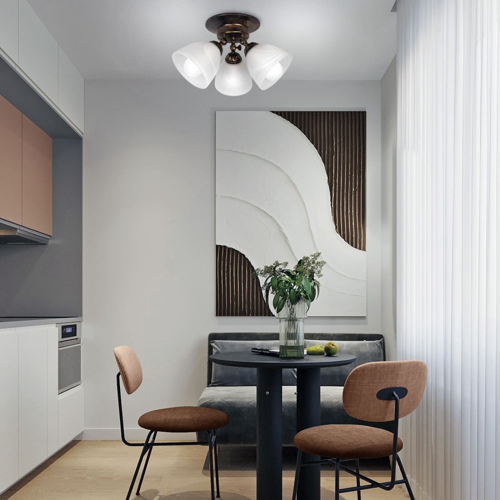 - Высокое Качество Материалов: Светильник изготовлен из прочного и долговечного металла, что гарантирует его надежность и долгий срок службы. Плафоны выполнены из стекла, обеспечивающего качественное рассеивание света. Металлическое основание придает конструкции дополнительную устойчивость и солидность.