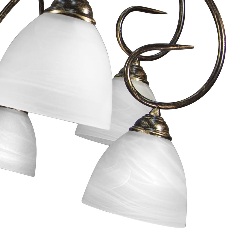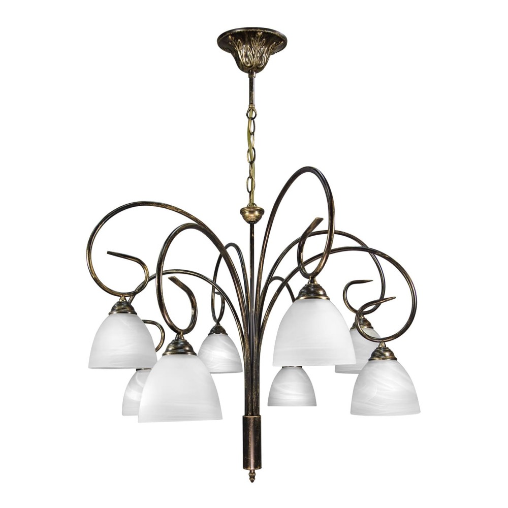 Рассеиватель направлен вниз, что позволяет создать акцентное освещение и подчеркнуть красоту предметов интерьера. Дизайн люстры сочетает в себе элементы классики, неоклассики и прованса, что делает ее универсальной и подходящей для различных стилей интерьера.