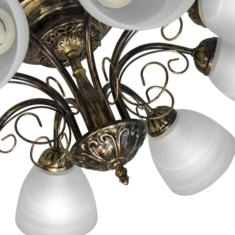 Люстра оснащена 8 плафонами из стекла, что обеспечивает равномерное и яркое освещение площади до 25-35 квадратных метров. Благодаря направленности рассеивателя вниз, свет фокусируется на зоне комфорта, создавая приятную и расслабляющую атмосферу. Вы можете использовать люстру с различными типами ламп: накаливания, светодиодные или люминисцентные – выбор за вами. Светодиодные лампы, безусловно, являются наиболее энергоэффективным и долговечным вариантом.
