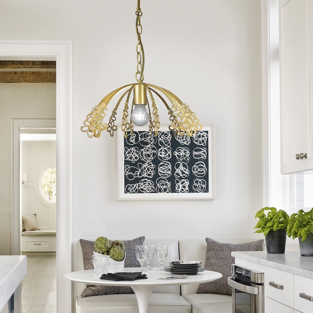 - Тип светильника: Подвесная люстра – оптимальный выбор для создания акцентного освещения над обеденным столом.