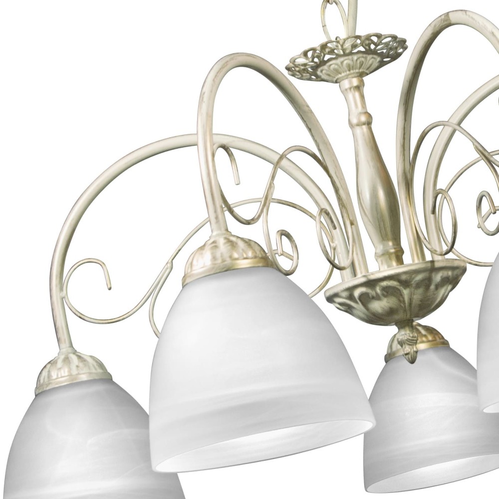 Пятиплафовая конструкция: Пятиплафовая конструкция люстры обеспечивает равномерное распределение света по комнате, создавая комфортную и приятную атмосферу. Каждый плафон обеспечивает достаточное количество света, что делает ее идеальной для больших помещений.