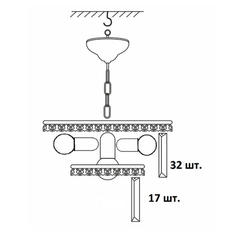 - Тип крепления: Крюк – надежно фиксирует люстру на потолке.
