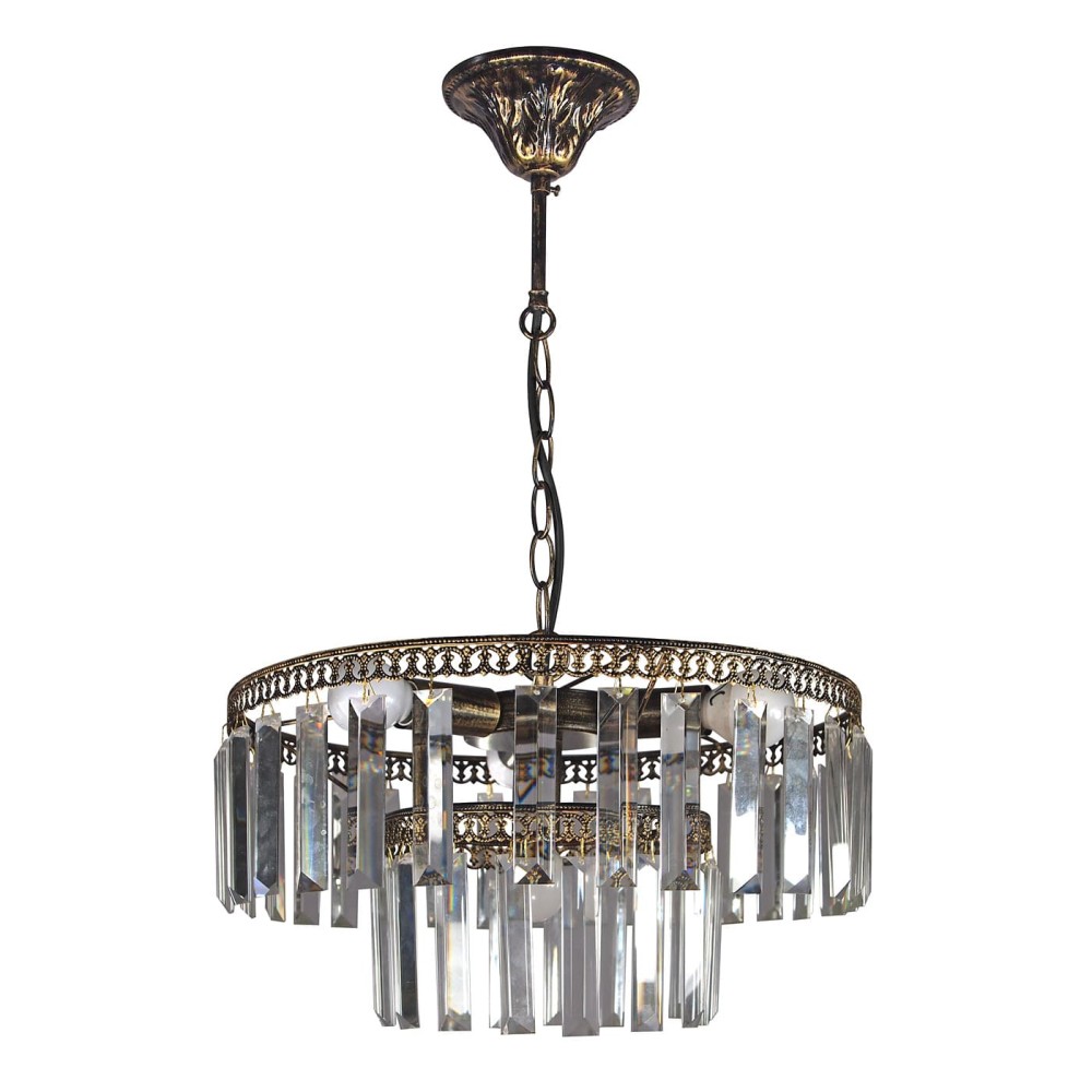 Люстра S2493-4 – это не просто источник света, это произведение искусства. Ее основание, выполненное из прочного металла, покрытого патиной золота, придает ей неповторимый вид, сочетая в себе благородство и глубину. Черный цвет, дополняющий патину, создает контраст, подчеркивающий красоту хрустальных элементов. Ширина основания – 12 см, что обеспечивает устойчивость и гармоничное сочетание с любым интерьером.