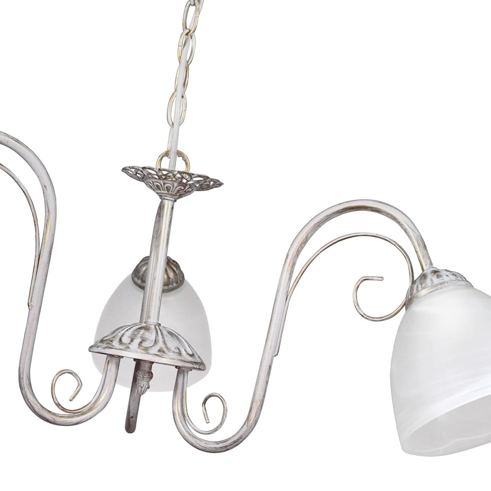 - Цвет: Белый с патиной золота – элегантный и благородный цвет, который гармонично сочетается с различными цветовыми решениями интерьера. Патинирование придает светильнику винтажный вид, добавляя ему шарма и индивидуальности.