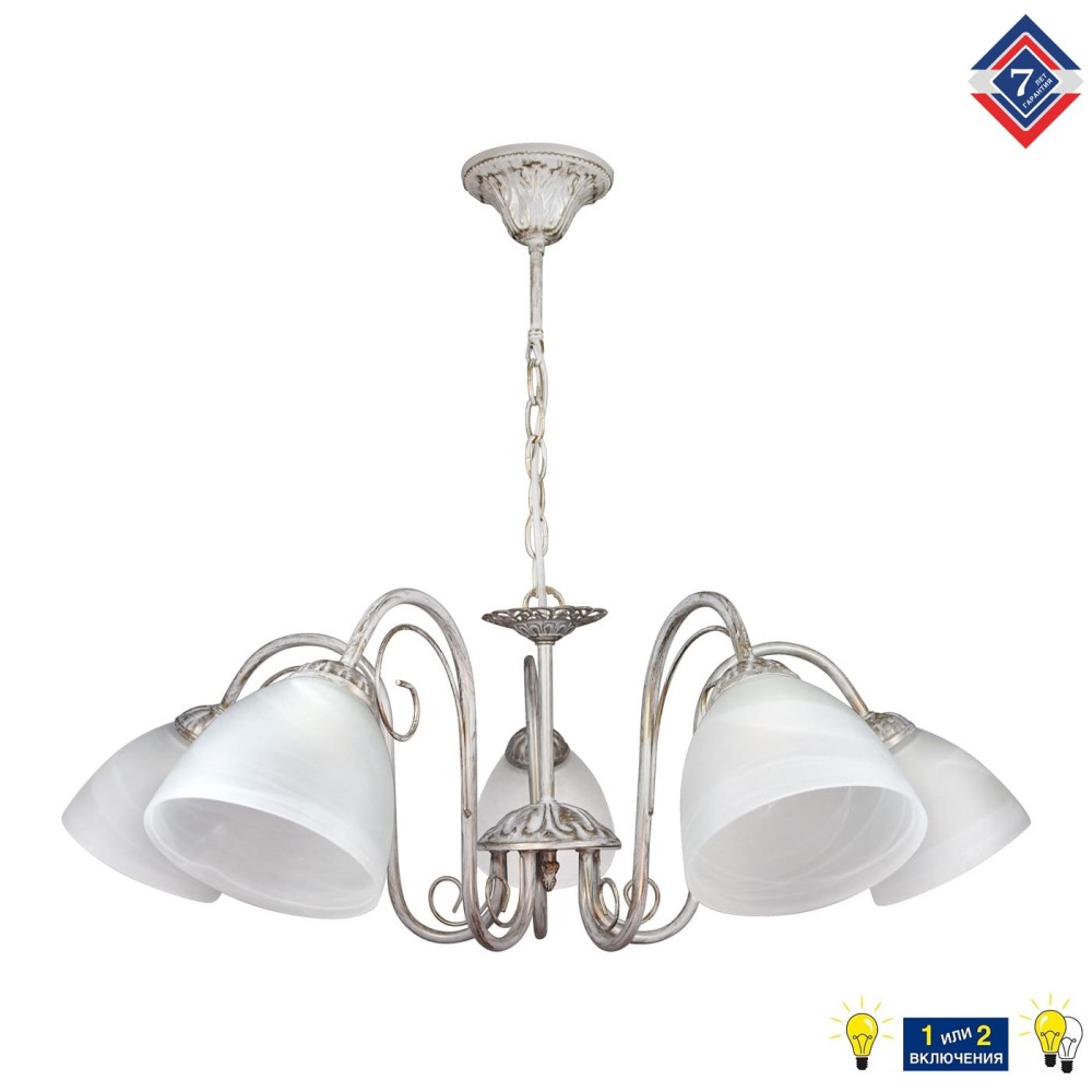 Люстра S2498-5 от Петрасвет – это не просто светильник, а стильный аксессуар, который преобразит ваш интерьер и создаст атмосферу роскоши и уюта. Благодаря своим высоким техническим характеристикам, элегантному дизайну и надежности, эта люстра станет украшением вашего дома на долгие годы. Инвестируйте в качество и красоту – вы не пожалеете! Люстра подвесная 5 плафонов большая белая российского производства ПЕТРАСВЕТ S2498-5, 5хЕ27 макс, 60Вт с плафонами из стекла, цепь можно укоротить до 1 звена на 17 см, стиль - классический, арматура - металл, цвет светильника- белый с патиной золота, размеры светильника (LxWxH) - 70x70x62, вес - 3,5 кг, Люстра на 2 включения, Люстра подвесная и для натяжных потолков и освещение 15-20 м2 помещения в зависимости от мощности лампочек Е27, Люстра подвесная цепная 5 рожковая белая с золотом подходит для освещения комнат, кабинета, гостиной, спальни, столовой, детской, кухни, Заводская гарантия 7 лет, Люстра просто собирается, Люстры пяти рожковые проверены на производстве, плотно упакован в коробке из тройного гофра картона, Упаковка выдерживает и гарантирует сохранность содержимого при падении на дно и ребро коробки с высоты 110 см, Лампочки светодиодные LED подбираются по следующим параметрам: для яркого освещения - 3 Вт на 1 м2 комнаты, для среднего - 2 Вт на 1 м2, В случае боя или не комплекта, вышлем новы за свой счет в день обращения,