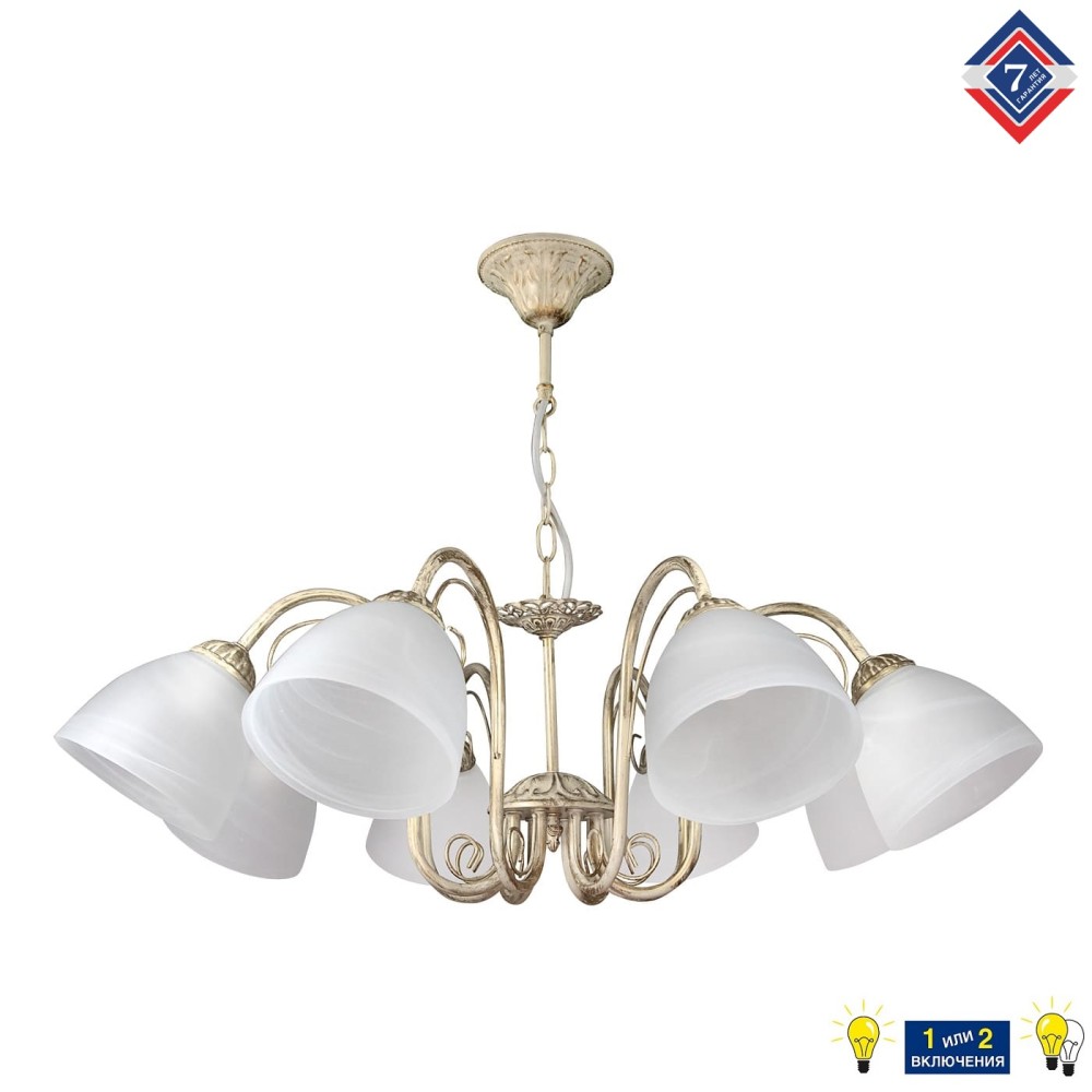 Люстра подвесная 8 плафонов S2499-8 от PETRASVET – это идеальный выбор для тех, кто ценит качество, стиль и функциональность. Она станет прекрасным украшением вашего дома и создаст атмосферу уюта и тепла. Инвестируйте в качественное освещение – и ваш дом будет радовать вас долгие годы! Люстра подвесная 8 плафонов большая в зал российского производства ПЕТРАСВЕТ S2499-8, 8хЕ27 макс, 60Вт с плафонами из стекла, цепь можно укоротить до 1 звена на 17 см, стиль - классический, арматура - металл, цвет светильника- бежевый с патиной золота, размеры светильника (LxWxH) - 70x70x62, вес - 5,3 кг, Люстра на 2 включения, Люстра подвесная и для натяжных потолков и освещение 24-32 м2 помещения в зависимости от мощности лампочек Е27, Люстра подвесная цепная 8 рожковая бежевая с золотом подходит для освещения комнат, кабинета, гостиной, спальни, столовой, детской, кухни, Заводская гарантия 7 лет, Люстра просто собирается, Подвесной светильник на 8 лампочек просто собирается, проверен на производстве, плотно упакован в коробке из тройного гофра картона, Упаковка выдерживает и гарантирует сохранность содержимого при падении на дно и ребро коробки с высоты 110 см, Лампочки светодиодные LED подбираются по следующим параметрам: для яркого освещения - 3 Вт на 1 м2 комнаты, для среднего - 2 Вт на 1 м2, В случае боя или не комплекта, вышлем новы за свой счет в день обращения,