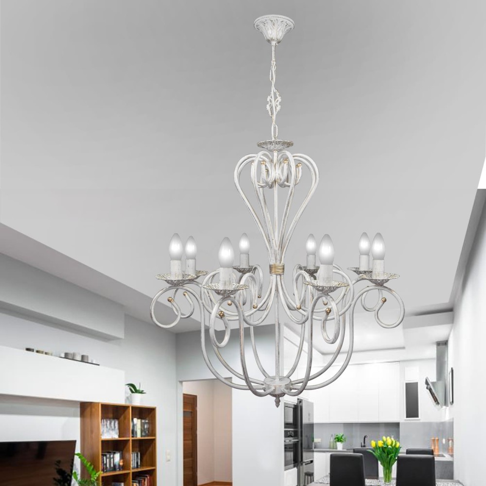 - Роскошный дизайн: Люстра S3017-8 сочетает в себе элегантность неоклассики и утонченность прованса. Патинированное золотое покрытие придает светильнику глубину и насыщенность, а белый металл подчеркивает его изысканность. Идеально дополнит интерьеры в стиле ретро, барокко, ар-деко или просто для тех, кто ценит классическую красоту.