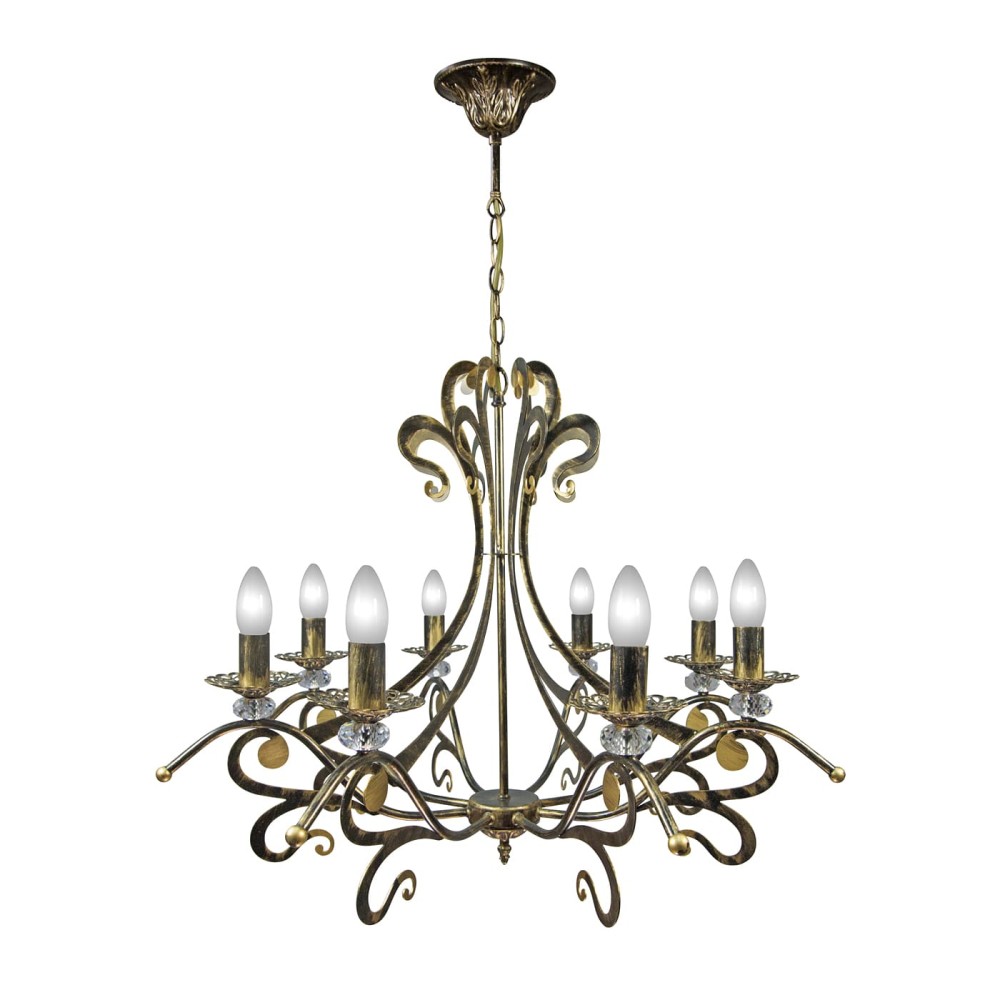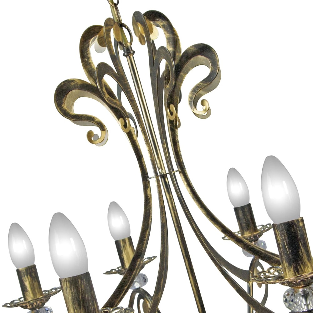 - Материалы премиум-класса: Люстра выполнена из прочного и долговечного металла, покрытого благородной патиной золота. Это придает светильнику особый шарм и глубину цвета, создавая ощущение богатства и роскоши. Металл, выбранный для изготовления светильника, отличается высокой устойчивостью к коррозии и механическим повреждениям, что гарантирует долгий срок службы.