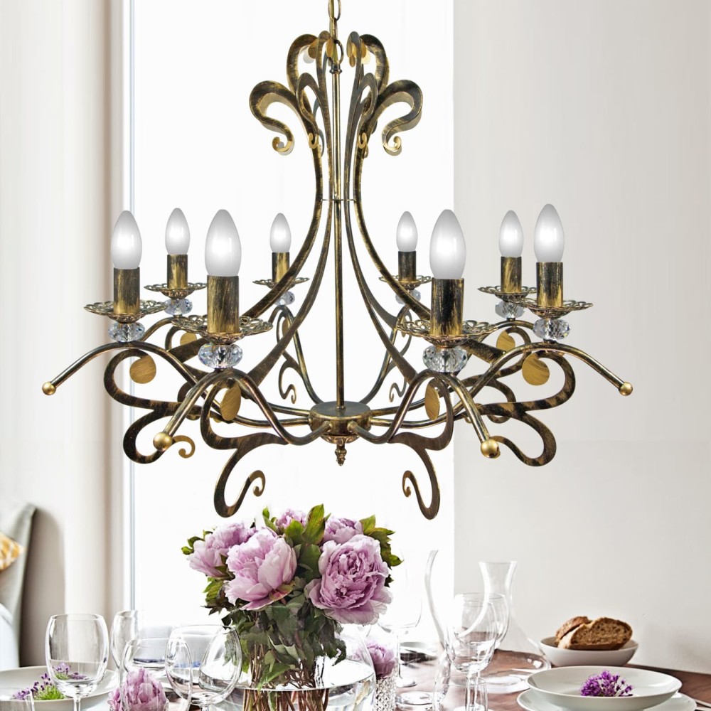 - Количество ламп и их разнообразие: В этой люстре установлено 8 ламп, что обеспечивает достаточное освещение даже для больших помещений. Вы можете выбрать наиболее подходящий тип ламп для вашего интерьера: накаливания для создания теплого и уютного света, светодиодные для экономии электроэнергии и долговечности, или люминисцентные для сбалансированного освещения. Возможность выбора типа ламп позволяет адаптировать свет под ваши индивидуальные предпочтения.