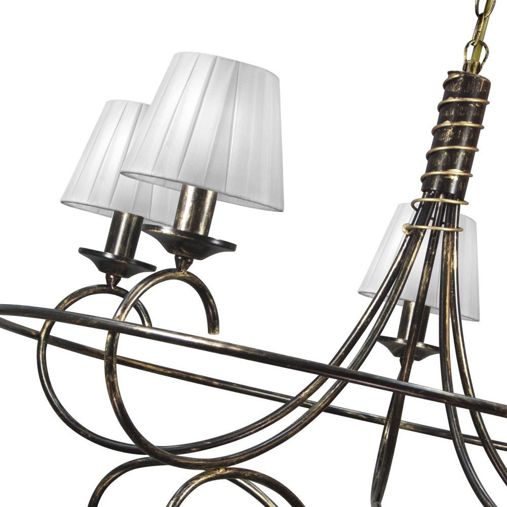 Эта люстра предназначена для использования с различными типами ламп: накаливания, светодиодными и люминисцентными. Выбор типа ламп позволит вам подобрать оптимальное освещение и энергоэффективность. Благодаря регулируемой высоте, вы можете настроить оптимальное расположение светильника в соответствии с вашими потребностями и особенностями интерьера. Абажуры, выполненные из высококачественной ткани, обеспечивают мягкое и рассеянное освещение, создавая уютную и расслабляющую атмосферу. Патинированное золотое покрытие придает светильнику роскошный и благородный вид, подчеркивая его изысканный дизайн. Срок гарантии 7 лет гарантирует, что вы можете наслаждаться этим элегантным светильником долгие годы. Размер коробки обеспечивает удобство транспортировки и хранения. Этот светильник станет прекрасным дополнением к вашему дому, добавив ему стиля, элегантности и уюта. Установка и использование данной люстры не требуют специальных навыков.
