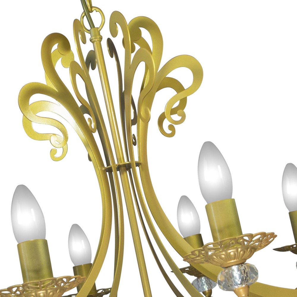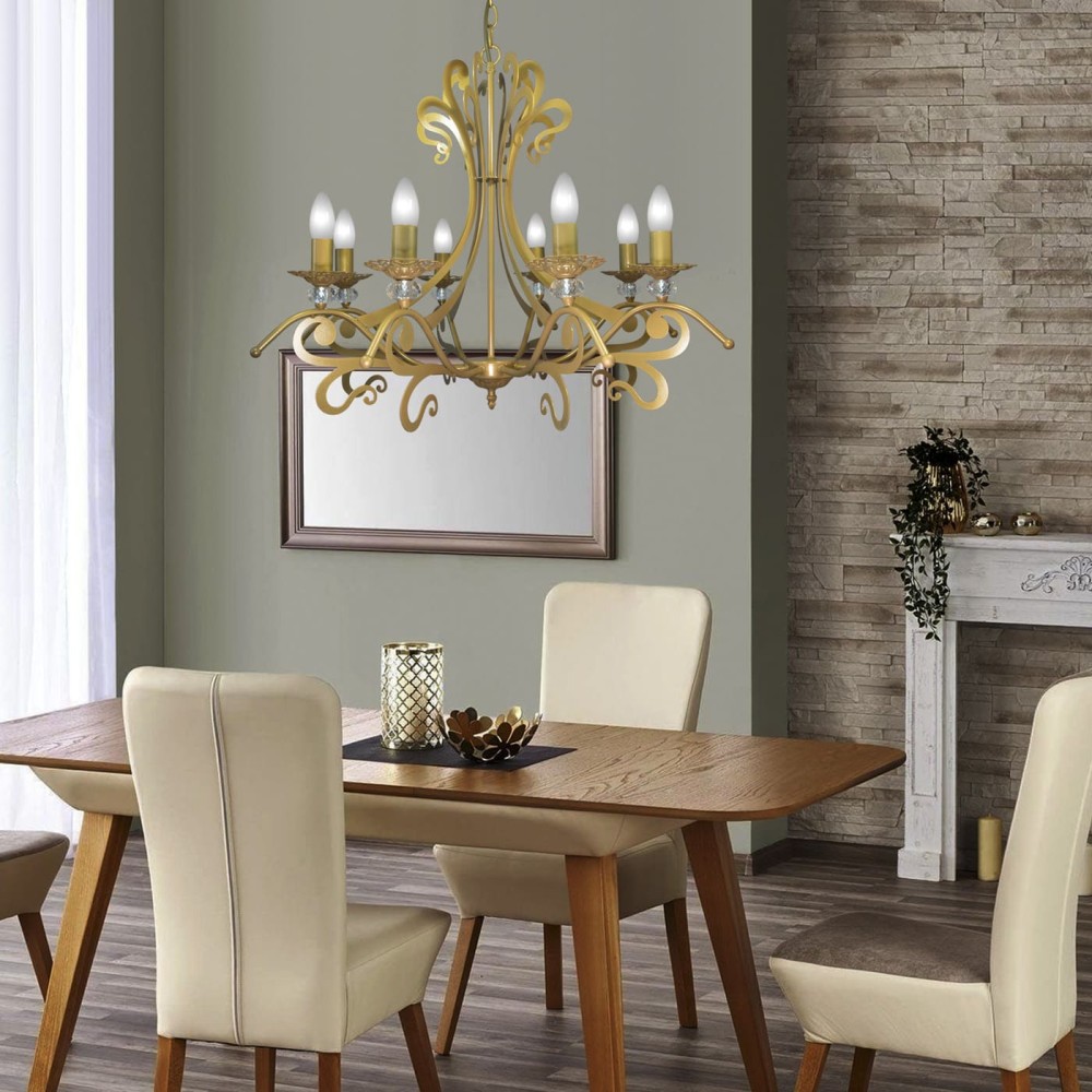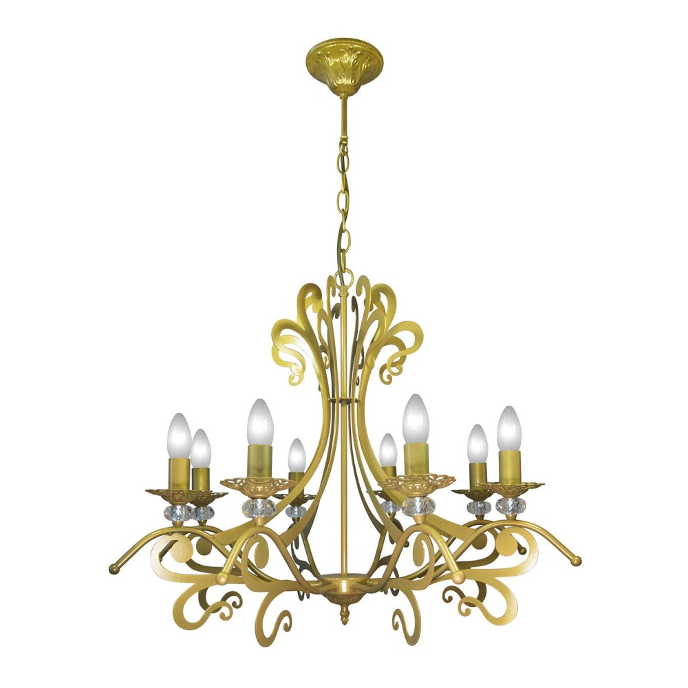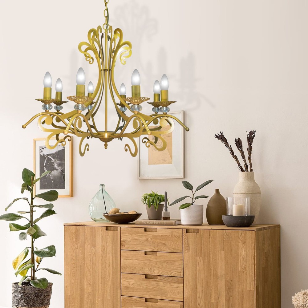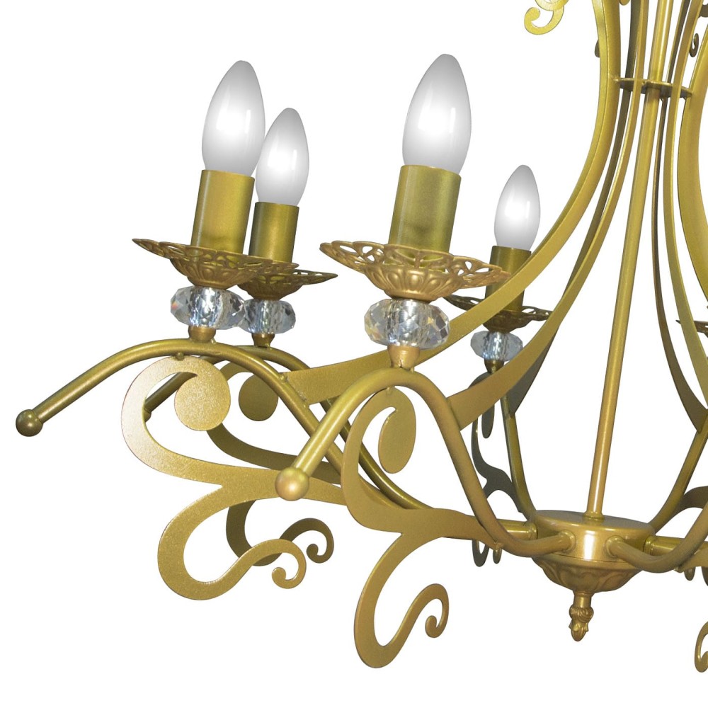 - Декоративные Элементы: Сердцем люстры являются 8 великолепных хрустальных вставок, которые играют светом, создавая завораживающий блеск и игру теней. Хрусталь – это символ роскоши и благородства, который всегда будет актуален.
