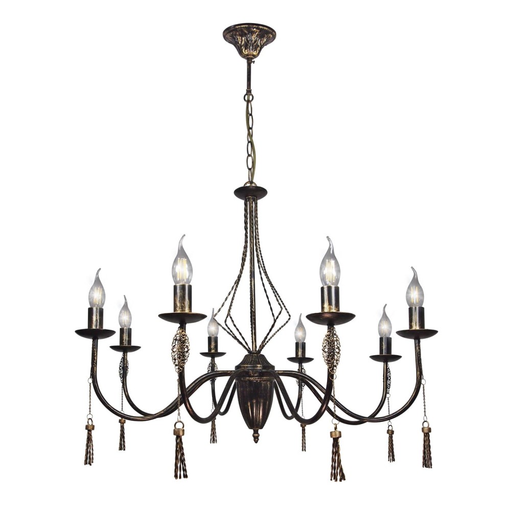 Сделайте свой дом ярче и уютнее с люстрой PETRASVET! Люстра подвесная ковка большая свечи 8 ламп с подвесками металл российского производства ПЕТРАСВЕТ S3144-8, 8хЕ14 макс, 60Вт, цепь можно укоротить до 1 звена на 17 см, стиль - большая сварная классическая ковка, арматура - металл, цвет светильника- черный с патиной золота, размеры светильника (LxWxH) -80x80x99, вес - 2,5 кг, Люстра на 2 включения, Люстра подвесная и для натяжных потолков и освещение 24-32 м2 помещения в зависимости от мощности лампочек Е14, Люстра подвесная цепная 8 рожковая подходит для освещения комнат, кабинета, гостиной, спальни, столовой, детской, кухни, Заводская гарантия 7 лет, Люстра просто собирается, Подвесной светильник на 8 лампочек произведен и проверен на производстве, плотно упакован в коробке из тройного гофра картона, Подвесная люстра вешается стандартным крючком на потолочный крюк, провода подсоединяются к клемной колодке люстры и фиксируется цепная чашка в верхнем положении винтом, Лампочки светодиодные LED подбираются по следующим параметрам: для яркого освещения - 3 Вт на 1 м2 комнаты, для среднего - 2 Вт на 1 м2, В случае боя или не комплекта, вышлем новы за свой счет в день обращения,