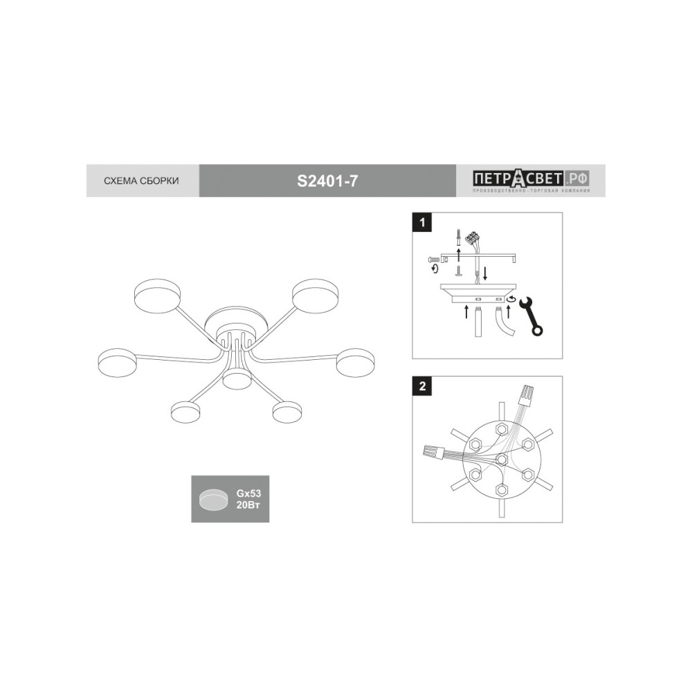 Ключевые слова для SEO: светодиодная люстра, потолочная люстра, PETRASVET, S2392-7, светодиодная люстра, купить люстру, современная люстра, неоклассическая люстра, люстра на 7 ламп, светодиодные лампы, экономичная люстра, гарантия 7 лет, люстра для гостиной, люстра для спальни, купить светодиодную люстру, потолочный светильник, купить люстру в России, светильник для дома, элегантное освещение, стильное освещение, яркое освещение, равномерное освещение, экономия электроэнергии, долговечный светильник, гарантия качества. Люстра потолочная светодиодная большая черная дизайнерская Петрасвет производство люстр №1 в России S2392-7, 7хGX53 макс, 20Вт, стиль - модерн, арматура - металл, цвет светильника- черный, размеры светильника (LxWxH) - 68x68x21, вес - 2 кг, Потолочный светильник LED рассчитан и на натяжной потолок и освещение 21-30 м2 помещения в зависимости от мощности лампочек GX53, Все люстры потолочные подвесные подходят и для натяжных и подвесных потолков, Люстра потолочная светодиодная черная подходит для освещения комнат, кабинета, гостиной, спальни, столовой, детской, кухни, Заводсткая гарантия завода Петрасвет 7 лет, Светильник потолочный светодиодный хай тек LED плотно уложен в коробке, Светодиодные люстры потолочные для дома крепятся к потолку стандартной потолочной планкой длиной 18 см, Лампочки светодиодные LED подбираются по следующим параметрам: для яркого освещения - 3 Вт на 1 м2 комнаты, для среднего - 2 Вт на 1 м2, Люстра лампочками не комплектуется, В случае боя или не комплекта, вышлем новый за свой счет в день обращения,