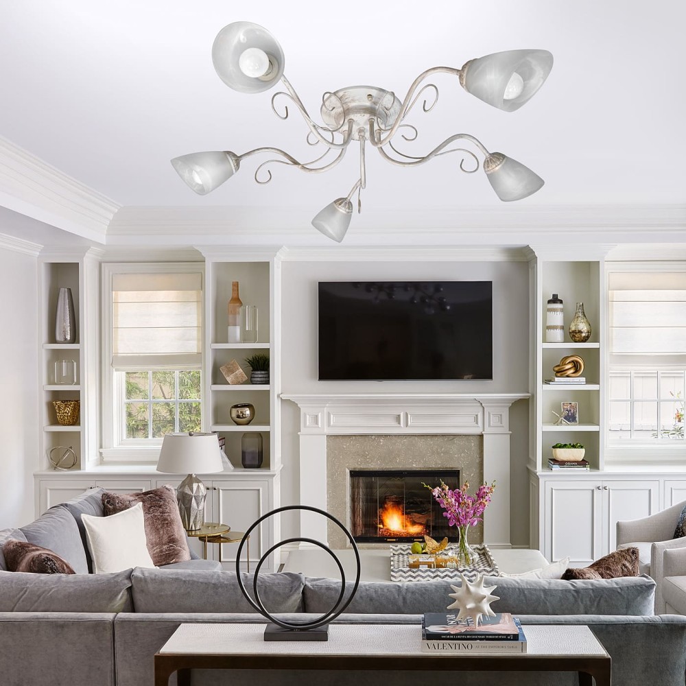- Равномерное освещение: Пятиплафовая конструкция и матовое стекло обеспечивают мягкое и рассеянное освещение.