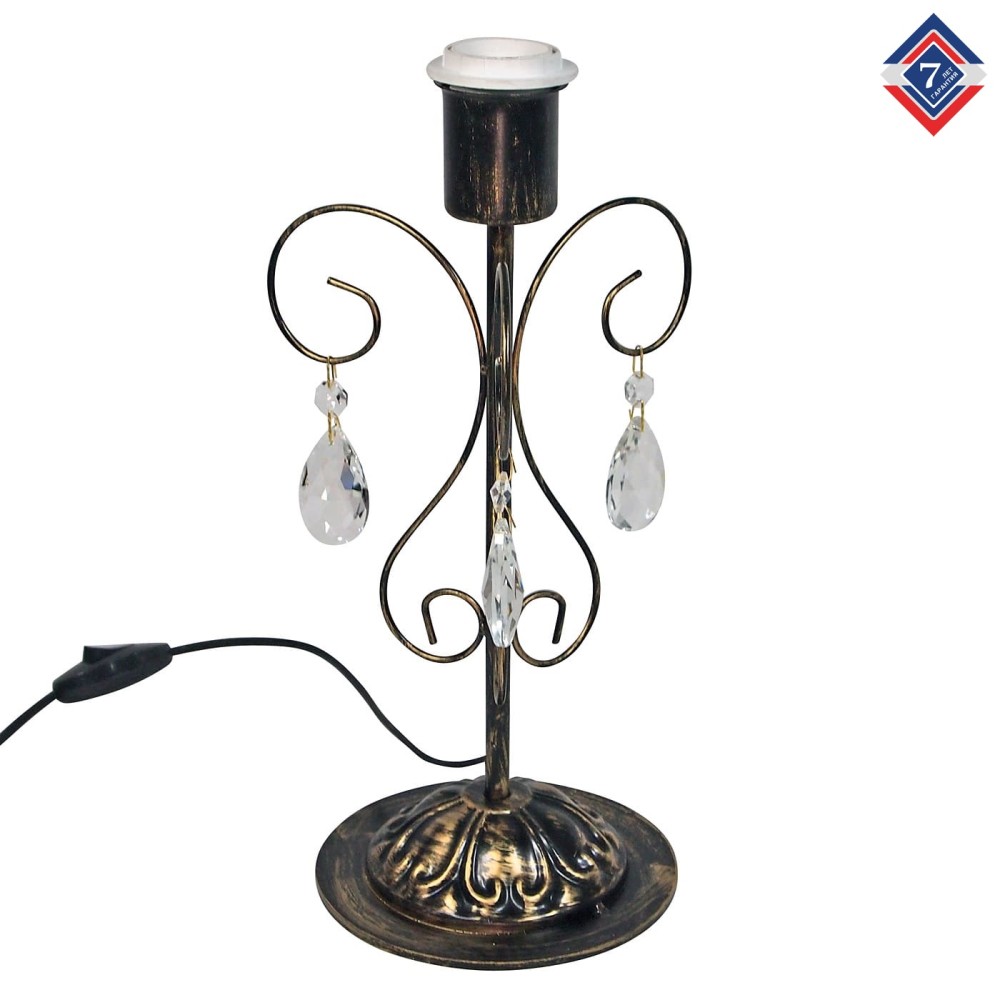 Настольная лампа российского производства ПЕТРАСВЕТ S5064-1, 1хЕ27 макс, 60Вт с хрустальными подвесками, стиль - классический, арматура - металл, цвет светильника- черный с патиной золота, размеры светильника (LxWxH) - 15x15x32, вес - 1 кг, Настольный светильник рассчитан на освещение 3-6 м2 помещения в зависимости от мощности лампочек Е27, Настольные лампы можно заказать к любой серии люстр российского производства ПЕТРАСВЕТа, Настольная лампа подходит для освещения комнат, кабинета, гостиной, спальни, столовой, детской, кухни, прихожей, НЕ ТРЕБУЕТ СБОРКИ, ЗАВОДСКАЯ ГАРАНТИЯ 7 ЛЕТ, Настольный светильник поставляется полностью собранный и плотно уложен в коробке, Лампочки светодиодные LED подбираются по следующим параметрам: для яркого освещения - 3 Вт на 1 м2 комнаты, для среднего - 2 Вт на 1 м2,