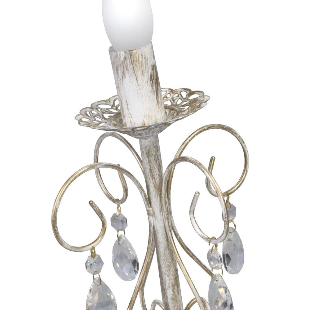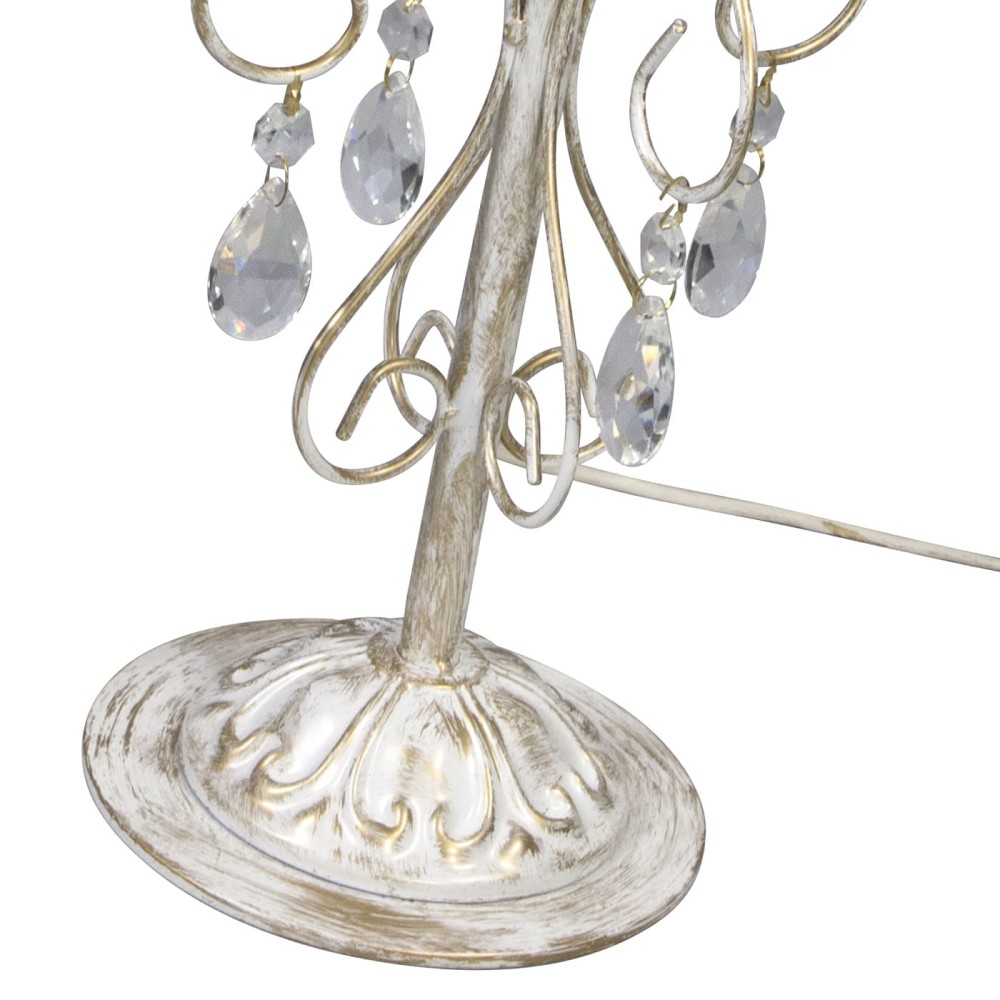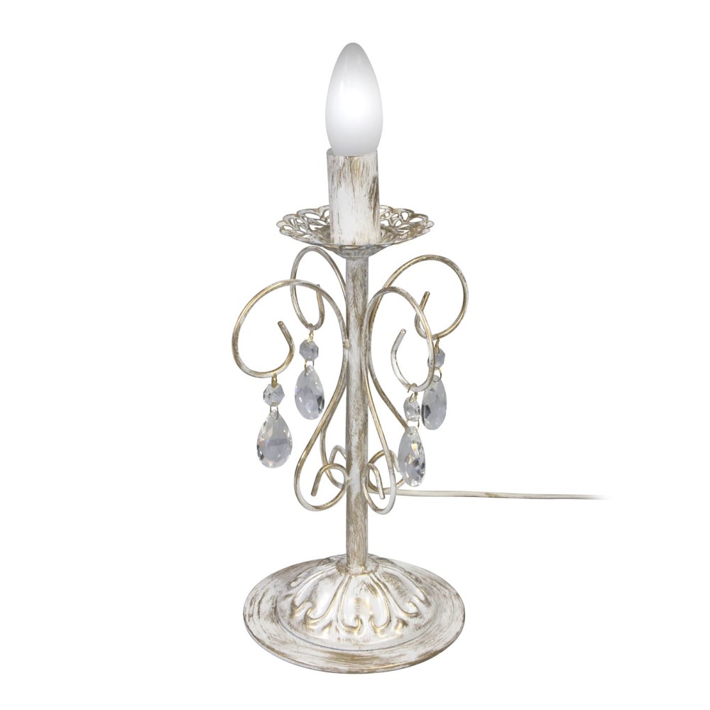 Настольная лампа с листочками и хрустальными подвесками классическая Е14 российского производства ПЕТРАСВЕТ S5084-1, 1хЕ14 макс, 60Вт с хрустальными подвесками, стиль - классический, арматура - металл, цвет светильника- белый с патиной золота, размеры светильника (LxWxH) - 14x14x27 без лампочки, вес - 0,5 кг, Настольный светильник рассчитан на освещение 3-6 м2 помещения в зависимости от мощности лампочек Е27, Настольные лампы можно заказать к любой серии люстр российского производства ПЕТРАСВЕТа, Настольная лампа подходит для освещения комнат, кабинета, гостиной, спальни, столовой, детской, кухни, прихожей, Заводская гарантия 7 лет,