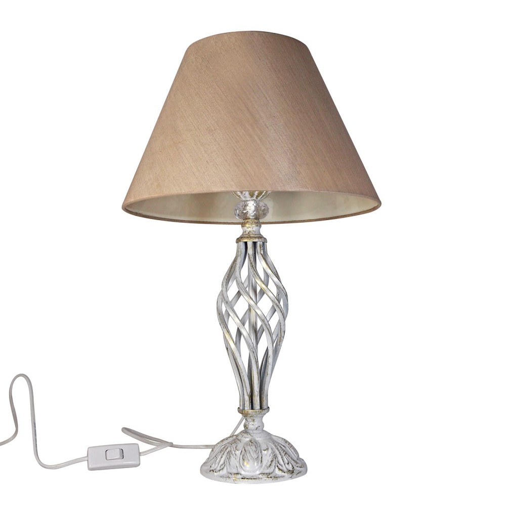 Настольная лампа под абажур Е27 большая с хрусталем белая с золотом российского производства ПЕТРАСВЕТ S5114-1, 1хЕ14макс, 60Вт, стиль - классический, арматура - металл, цвет светильника- белый с патиной золота, размеры светильника (LxWxH) - 12x12x38 см без лампочки, высота зависит от абажура, вес - 0,4 кг, Настольный светильник рассчитан на освещение 3-6 м2 помещения в зависимости от мощности лампочек Е27, Настольные лампы можно заказать к любой серии люстр российского производства ПЕТРАСВЕТа, Настольная лампа подходит для освещения комнат, кабинета, гостиной, спальни, столовой, детской, кухни, прихожей, Заводская гарантия 7 лет, Настольный светильник плотно уложен в коробке, Лампочки светодиодные LED подбираются по следующим параметрам: для яркого освещения - 3 Вт на 1 м2 комнаты,