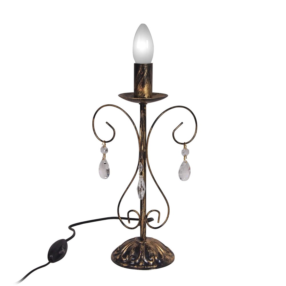 Настольная лампа с хрусталем черная российского производства ПЕТРАСВЕТ S5089-1, 1хЕ14 макс, 60Вт с хрустальными подвесками, стиль - классический, арматура - металл, цвет светильника- черный с патиной золота, размеры светильника (LxWxH) - 14x14x27, вес - 0,5 кг, Настольный светильник рассчитан на освещение 3-6 м2 помещения в зависимости от мощности лампочек Е14, Настольные лампы можно заказать к любой серии люстр российского производства ПЕТРАСВЕТа,