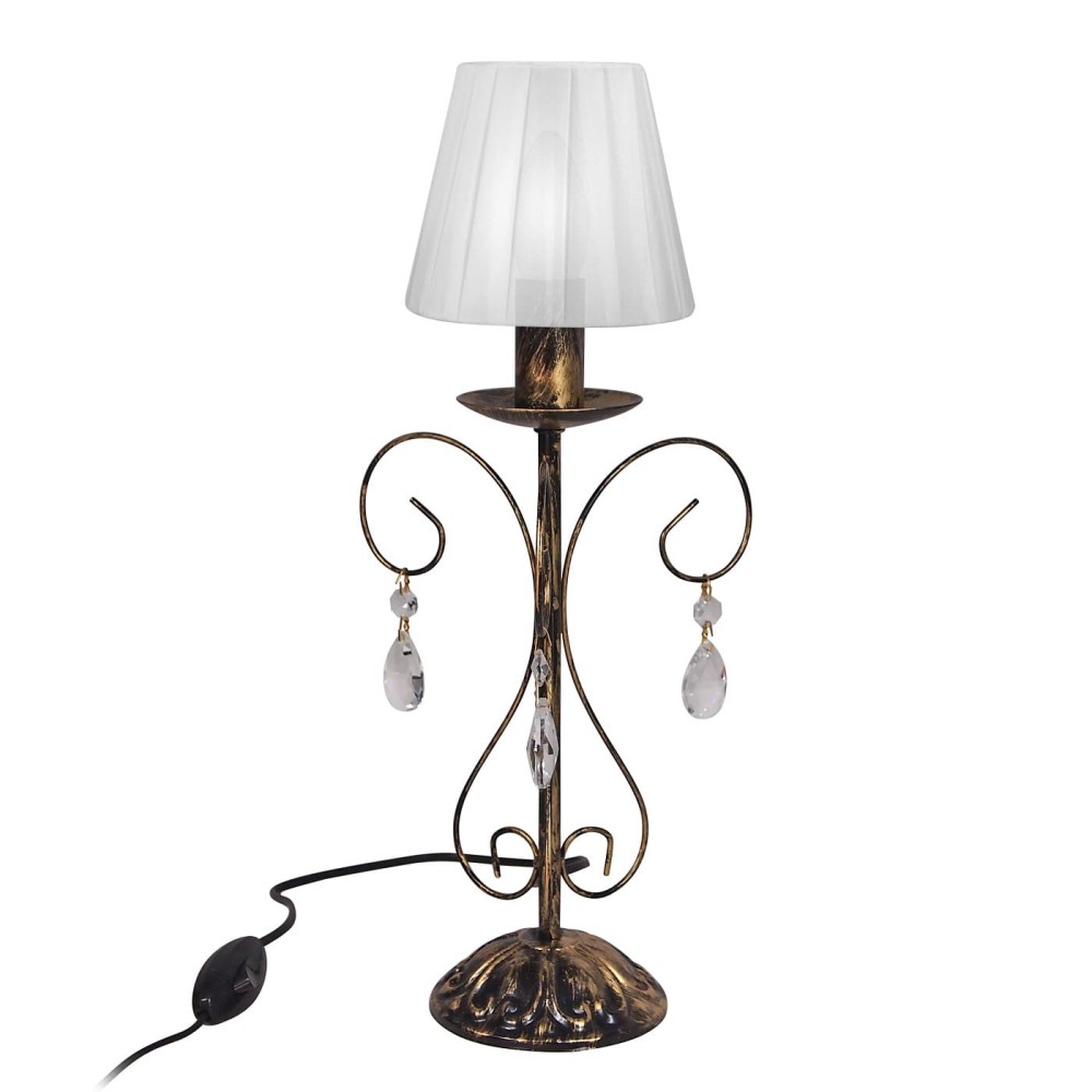 Lampa S089-1 выполнена из высококачественного металла, обработанного патиной золота, что придает ей благородный и теплый вид. Черный цвет основания контрастирует с золотистыми акцентами, создавая эффектный и запоминающийся образ. Декоративные элементы в виде хрустальных подвесок не только украшают лампу, но и рассеивают свет, создавая мягкое и приглушенное освещение. Хрусталь, используемый в качестве декоративных элементов, обладает превосходными светоотражающими свойствами, что обеспечивает равномерное и качественное освещение.