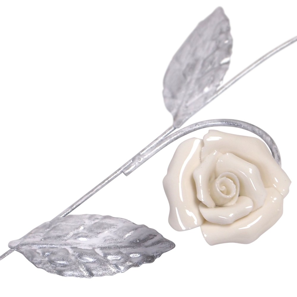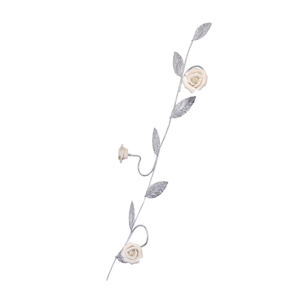 Ветка с розами S4036 – это воплощение гармонии между традиционными и современными элементами. Ее изящная форма, напоминающая ветку цветущего дерева, украшенную белыми розами, создает неповторимый визуальный эффект. Белые розы, выполненные из высококачественного металла, выглядят невероятно реалистично и добавляют светильнику романтичности и утонченности. Серебряные элементы, расположенные вокруг роз, подчеркивают их красоту и придают светильнику элегантный и благородный вид.